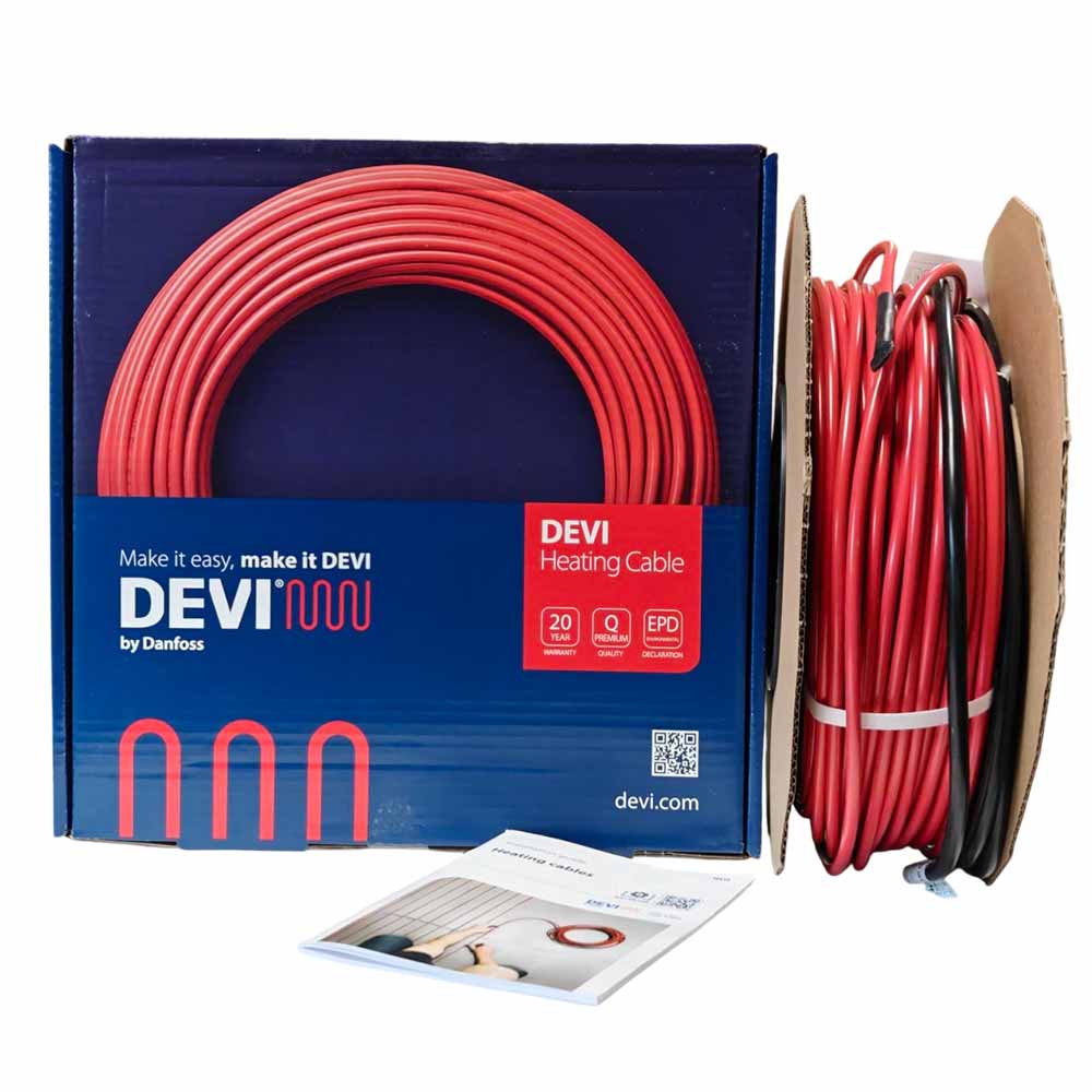 Нагрівальний кабель для теплої підлоги в стяжку Devi 18T — надійне рішення для створення якісної теплої підлоги, виробництво ЄС. Гріючий кабель високої потужності - 18 Вт/м.п. дає можливість використовувати його в режимі основного чи додаткового опалення будинку (загальна потужність теплої підлоги на м2, залежить від кроку укладання гріючого кабелю DEVIflex).
