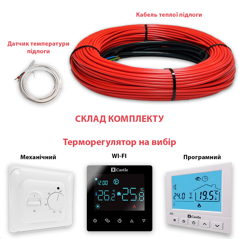 - Підключення до терморегулятора: Після укладання кабелю і монтажу стяжки важливо підключити систему до терморегулятора для контролю температури. Терморегулятор має бути налаштований в залежності від потреб і типу приміщення.