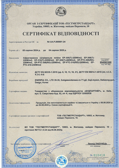 - Тип: Інфрачервона нагрівальна плівка