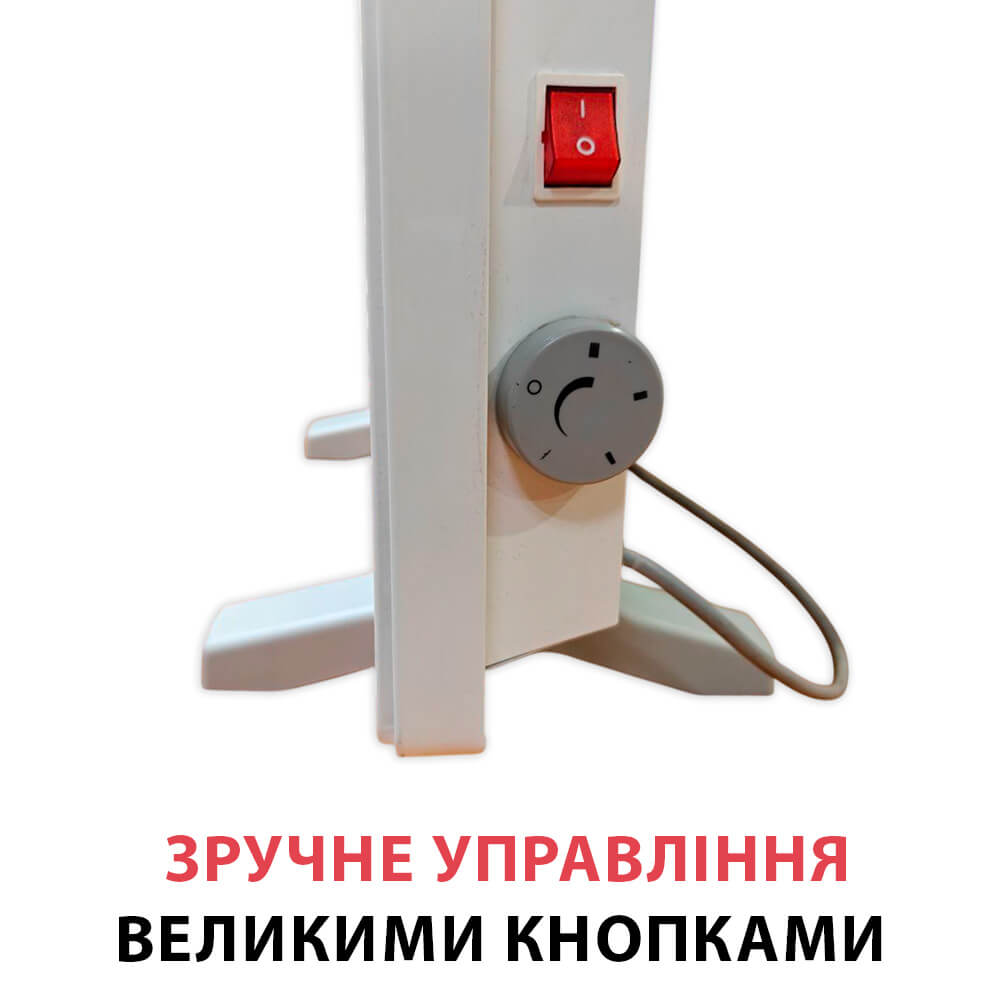 Регулювання потужності нагріву виконується поворотним коліщатком, розташованим на бічній панелі конвектора. Пристрій забезпечує плавне та точне налаштування температурного режиму для максимального комфорту.