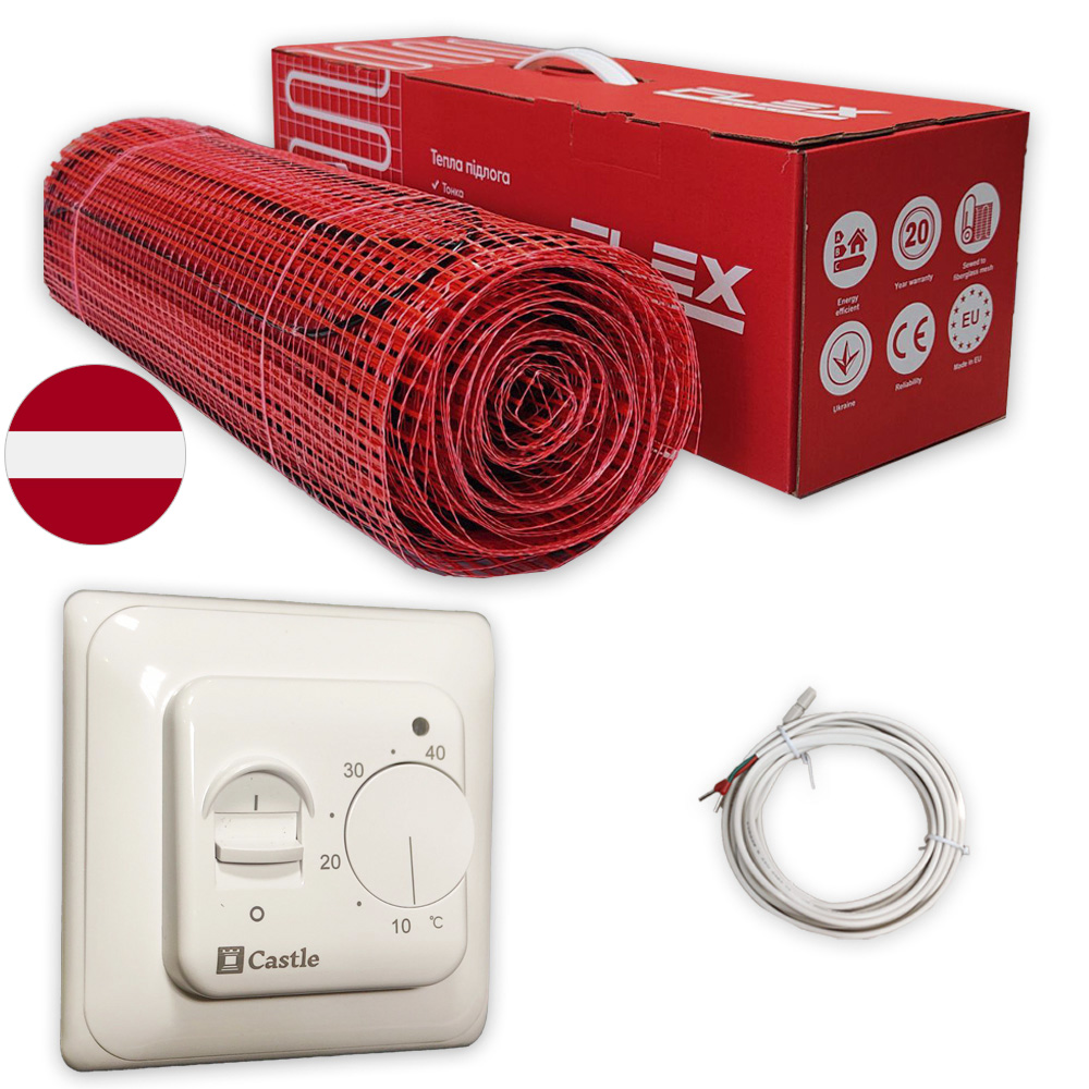 Мати для теплої підлоги Flex — тепла підлога вироблена в ЄС (Латвія), потужність гріючого мату - 175 Вт/м2 дає можливість використовувати його в режимі основного або додаткового опалення будинку (монтуєтся в плитковий клей або стяжку, під плитку та інші типи покриття) ширина матів для теплої підлоги 0,5 м. товщина 4 мм.