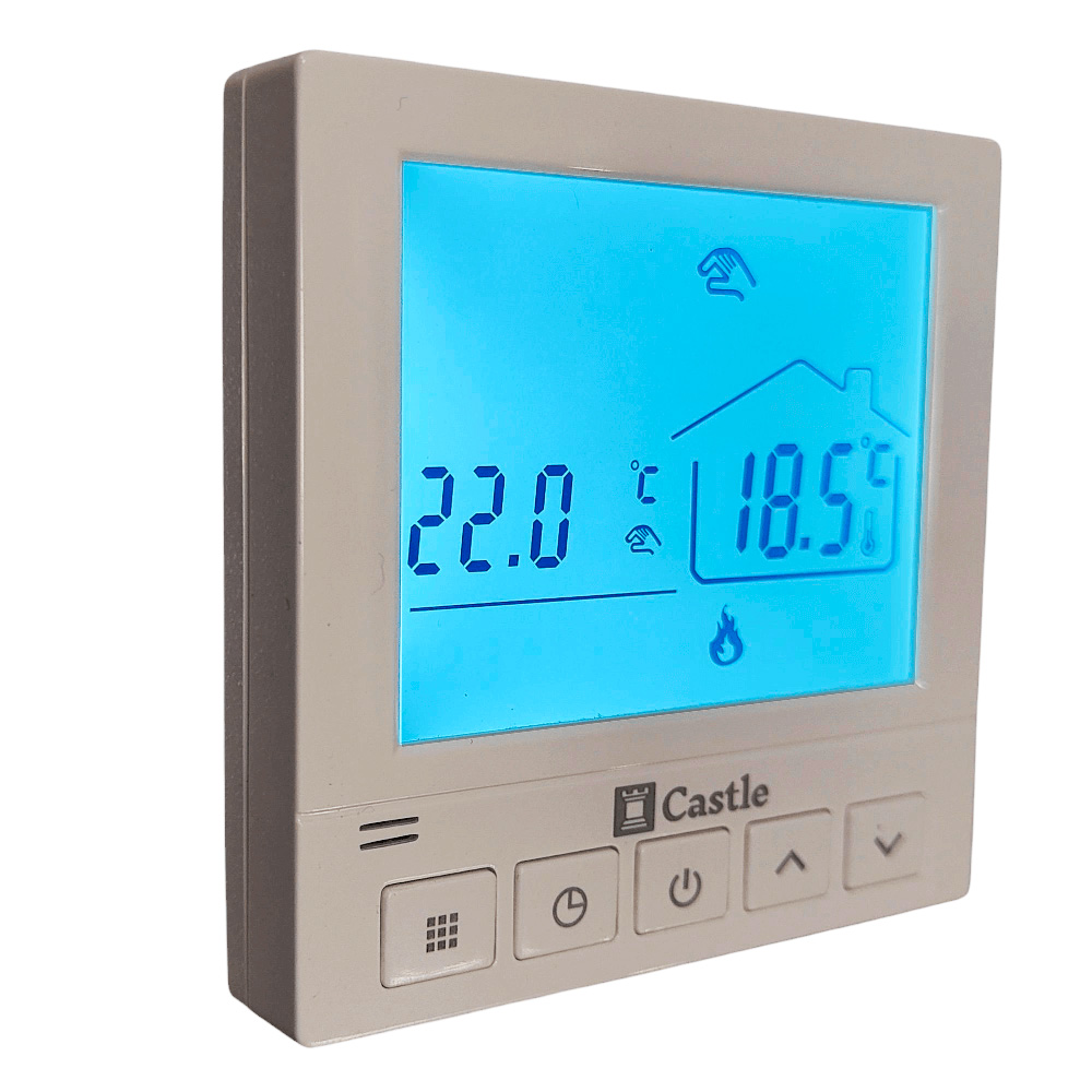 Програматор опалення для котла Castle AC819G призначений для керування електричними та газовими котлами. Модель має великий інформативний дисплей, що відображає всі необхідні дані про роботу опалювальної системи. Пристрій працює від мережі 220В та має функції програмування опалення (робота обігріву за розкладом), встановлюється в стандартний підрозетник.
