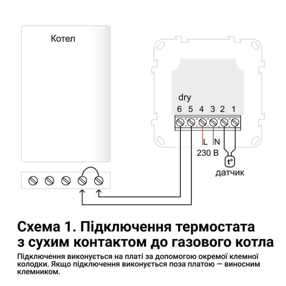 Попередження: Монтаж та підключення терморегулятора повинен проводити кваліфікований електрик. Не допускайте потрапляння води, вологи, бруду та інших забруднень у терморегулятор, оскільки це може призвести до пошкодження пристрою.